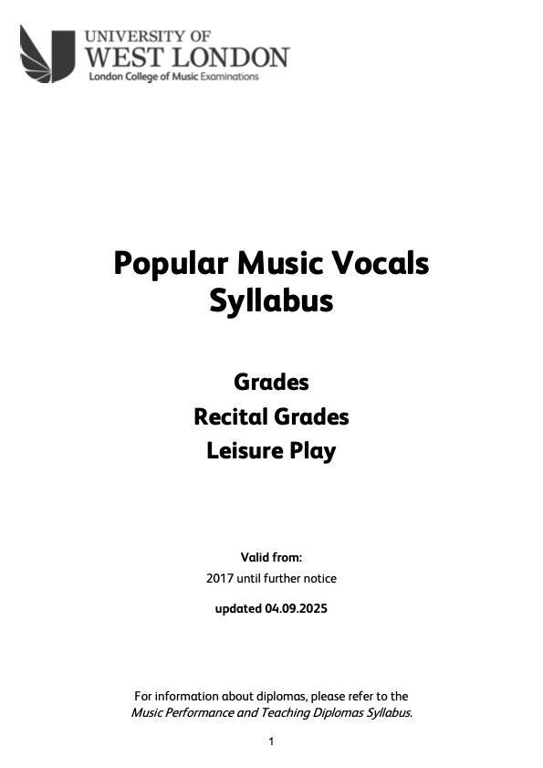 We adopt a blend between the curriculums from RSL Awards, Trinity College London, the London College of Music Examinations ('LCME'), and the Australian and New Zealand Cultural Arts Music Examinations ('ANZCA').